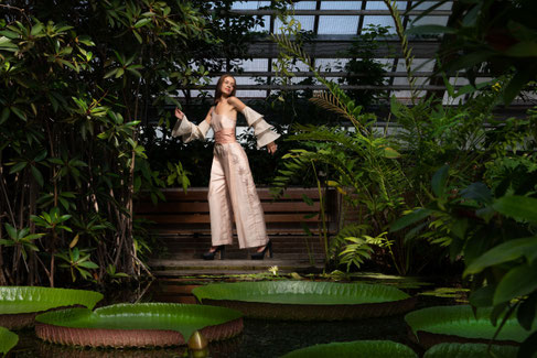 The collection draws attention to the polluting dyeing process of clothing in fast fashion. Judith looked at alternatives and wanted to experiment with natural paints, which do not involve any chemical product. This dyeing is already possible with hot water and kitchen waste, such as onion peels (red-brown or yellow) or avocado pits (pink).